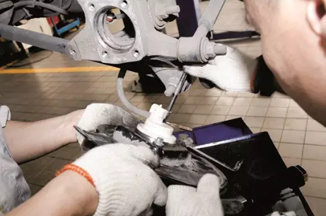 (1)维修前,为避免制动储液罐中的油液溢出,可酌情抽出部分制动液,维修完成后再补充,使其处于上、下限之间。