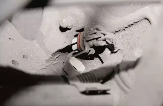 (1)断开轮毂轴承背面的轮速传感器插接器(图5)。