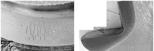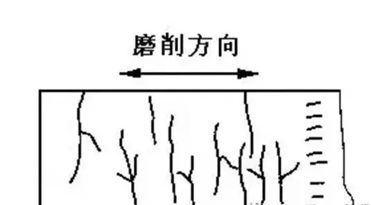 轻微的磨削裂纹表现与磨削方向成直角的平行线,特别严重的磨削裂纹呈龟甲状。深度大约为0. 1~0.2mm,看上去有点象龟裂.若用酸液浸蚀,龟裂则被明显地显现出来。